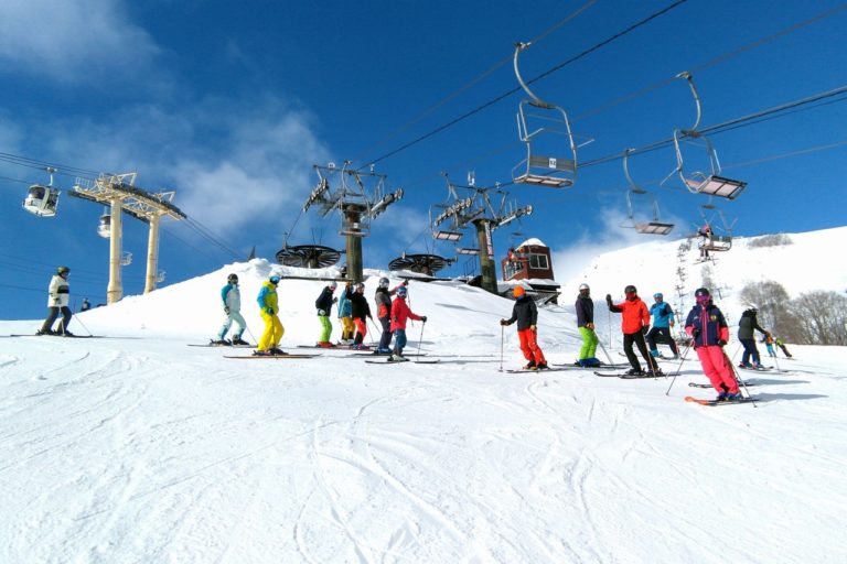 クラブの公式行事は12月の初滑りに始まり、1月、2月、3月と公式行事を実施しています。スキー場は群馬県、長野県が中心です。いずれの行事も技術水準に応じた班別構成で進めていますが、最終日は全員でのゲレンデ滑りやグループに分かれたりと様々です。